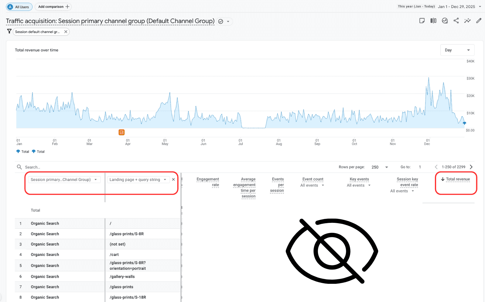 Now Sort the results in descending order for Revenue (e-commerce) or Key Events (B2B/lead gen).